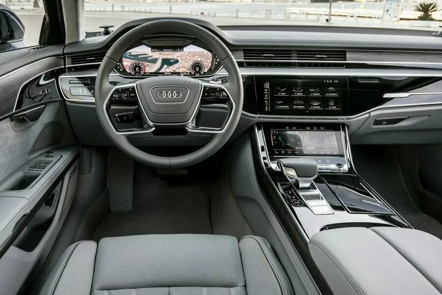 De vierde generatie van de Audi A8 was bij zijn lancering in het voorjaar van 2018 de eerste auto die niveau 3 van autonoom rijden haalde. Het arsenaal aan rijhulpmiddelen dat – al dan niet optioneel – in de Audi A8 verpakt zit, is dan ook ronduit indrukwekkend. Indrukwekkender dan de verpakking alvast, want het design loopt over van conservatisme. Iets waar de facelift uit 2022 weinig aan veranderde. Binnenin valt de ‘revolutie’ beter op, met grote aanraakschermen die het zenuwcentrum van de connectiviteit vormen. De nadruk ligt op comfort, zeker voor de passagiers achterin. Die kunnen in de LWB-versie, met zijn 13 centimeter langere wielbasis, languit genieten van een businessfauteuil, voetmassage incluis.