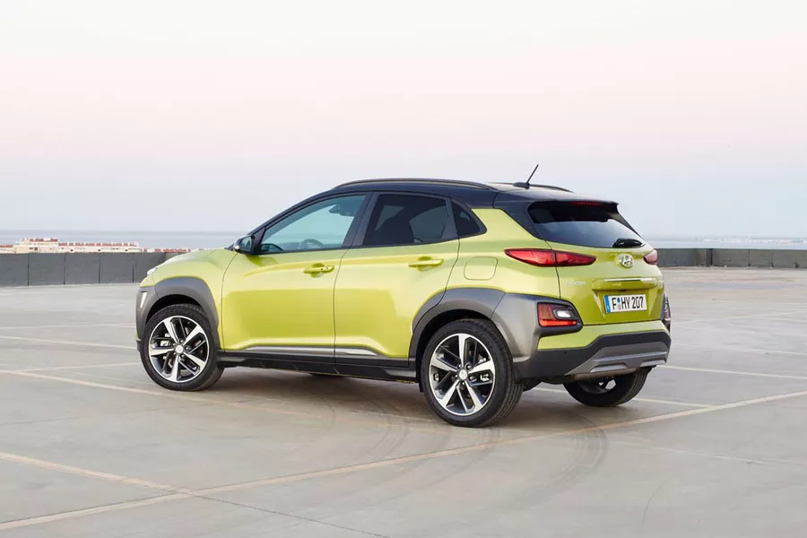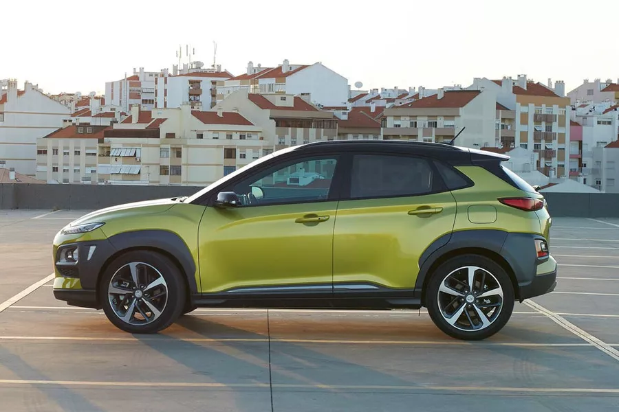 • De tweede generatie van de Kona, die in het najaar van 2023 uitkwam, is merkelijk groter dan zijn voorganger: met zijn 4,35 meter is hij ongeveer even lang als de eerste Tucson van twee decennia terug. Deze tweede Kona koppelt een voor een SUV gunstige stroomlijncoëfficiënt (Cx van 0,27) aan een erg gewaagde stijl. Vooral dan vooraan, met de lichtstrip van leds die over de hele bumper loopt. Prominente wielkasten en een dak in een contrasterende kleur (een optie weliswaar) maken het plaatje compleet. Binnenin doet het sobere en luchtige dashboard denken aan dat van de ­Ioniq-modellen. Alles is degelijk geassembleerd, hoewel de vele verschillende soorten kunststoffen enigszins afbreuk doen aan de kwaliteitsindruk. Zowel voor- als achterin heb je een uitgesproken gevoel van ruimte, en ook de koffer is nu die van een gezinsauto waardig.