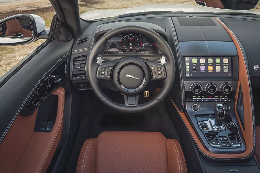 • De Jaguar F-Type gaat al mee sinds 2013, maar gaat binnenkort met pensioen. Deze bloedmooie coupé en cabrio kregen voor het modeljaar 2020 nog een facelift, die een scherpere blik combineerde met een aangepast onderstel, een opgewaardeerd motorenpalet en een opgefrist interieur. Designgewijs tekenden vooral de (led)lichten voor de vernieuwing, met rankere koplampen en dito achterlichten. Binnenin was het daarentegen zoeken naar de verschillen. De enige nieuwigheden hier waren een digitale instrumentencluster van 12,3 duim met meerdere weergavemogelijkheden en bijkomende connectiviteitsdiensten.