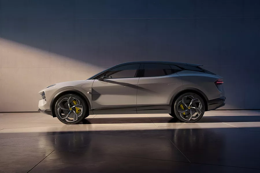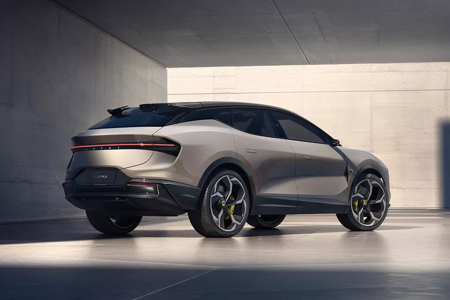 De Eletre bestaat in twee motorvarianten en drie uitrustingsniveaus. De basisversie en de S hebben twee identieke krachtbronnen, één op de vooras en één op de achteras, die samen 603 pk en 710 Nm produceren. De Eletre R heeft achteraan een krachtigere motor en ontwikkelt zo 905 pk en 985 Nm, genoeg om deze kolos in minder dan 3 seconden naar 100 te stuwen. De batterij is altijd 112 kWh groot (bruto) en kan op gelijkstroom laadvermogens tot 350 kW aan. Voor de basisversie claimt Lotus een rijbereik tot 600 kilometer, maar daarvoor moet je wel de nodige zelfdiscipline aan de dag leggen. Geen evidentie, gezien het potentieel dat in zijn onderstel schuilt.