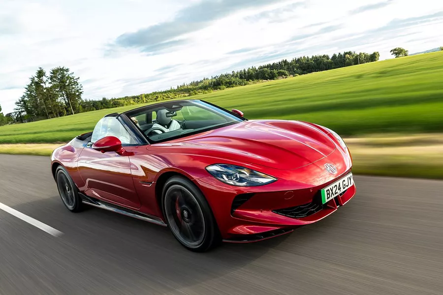 MG biedt twee uitvoeringen van de Cyberster: de Trophy met 340 pk en achterwielaandrijving, en de GT met 544 pk en vierwielaandrijving, die van 0 naar 100 km/u sprint in slechts 3,2 seconden. De 74,4 kWh-batterij geeft de Trophy een WLTP-bereik van 506 kilometer en de GT 442 kilometer. Voor de toekomst plant MG ook een coupéversie en zelfs een vastestofbatterij tegen 2026. De Cyberster voelt stabiel en gebalanceerd aan, hoewel het gewicht de scherpte in bochten wat vermindert. De GT biedt een betere controle, terwijl de Trophy perfect is voor ontspannen ritjes. Ook aan de snellader houdt de Cyberster de vaart erin, met een vermogen tot 150 kW.