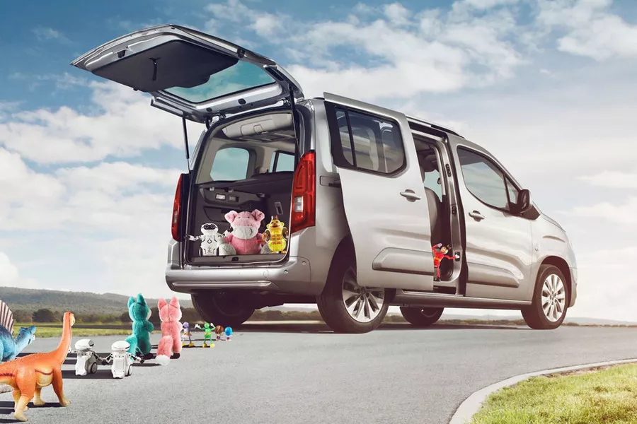 De Combo is altijd voorzien van twee handige schuifdeuren en beschikbaar als vijf- of zevenzitter, en in twee koetswerkvarianten: 4,40 of 4,75 meter. Dat er een batterij onder de koffervloer ligt, merk je niet: zelfs in de korte versie kun je nog altijd bijna 600 liter bagage kwijt, of zelfs meer dan 2.100 liter met alle stoelen neergeklapt. Buiten enkele specifieke weergaves voor het centrale scherm is de bestuurderspost identiek aan die in een gewone Combo. Alleen de stille werking verraadt dat je met een EV onderweg bent, net als de levendige reacties van de elektromotor op het gaspedaal. Ook nuttig om te weten; de Combo Electric mag een sleep tot 750 kilogram trekken.